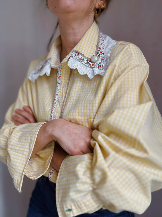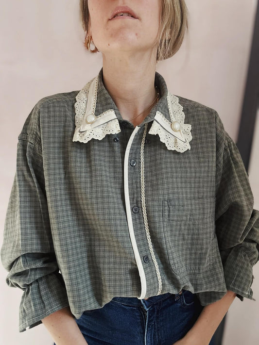 La ligne seconde main est la ligne fondatrice de Matsha. Née en 2018, créative, elle explore l'upcycling à partir de chemises de seconde main qualitatives. Chaque pièce, façonnée à l'instinct, devient unique. De véritables pièces coups de cœurs à collectionner.