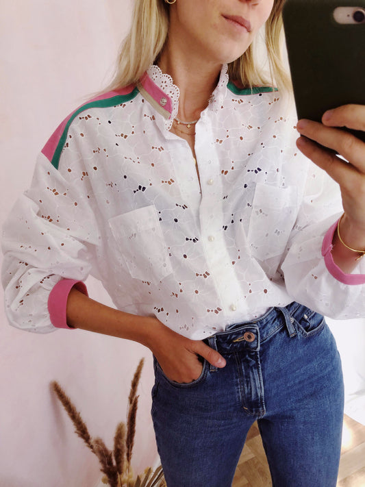 Crafted from beautiful cotton percale, our broderie anglaise blouses are 100% Made in France, from fabric to manufacturing. Romantic little treasures for everyday wear.