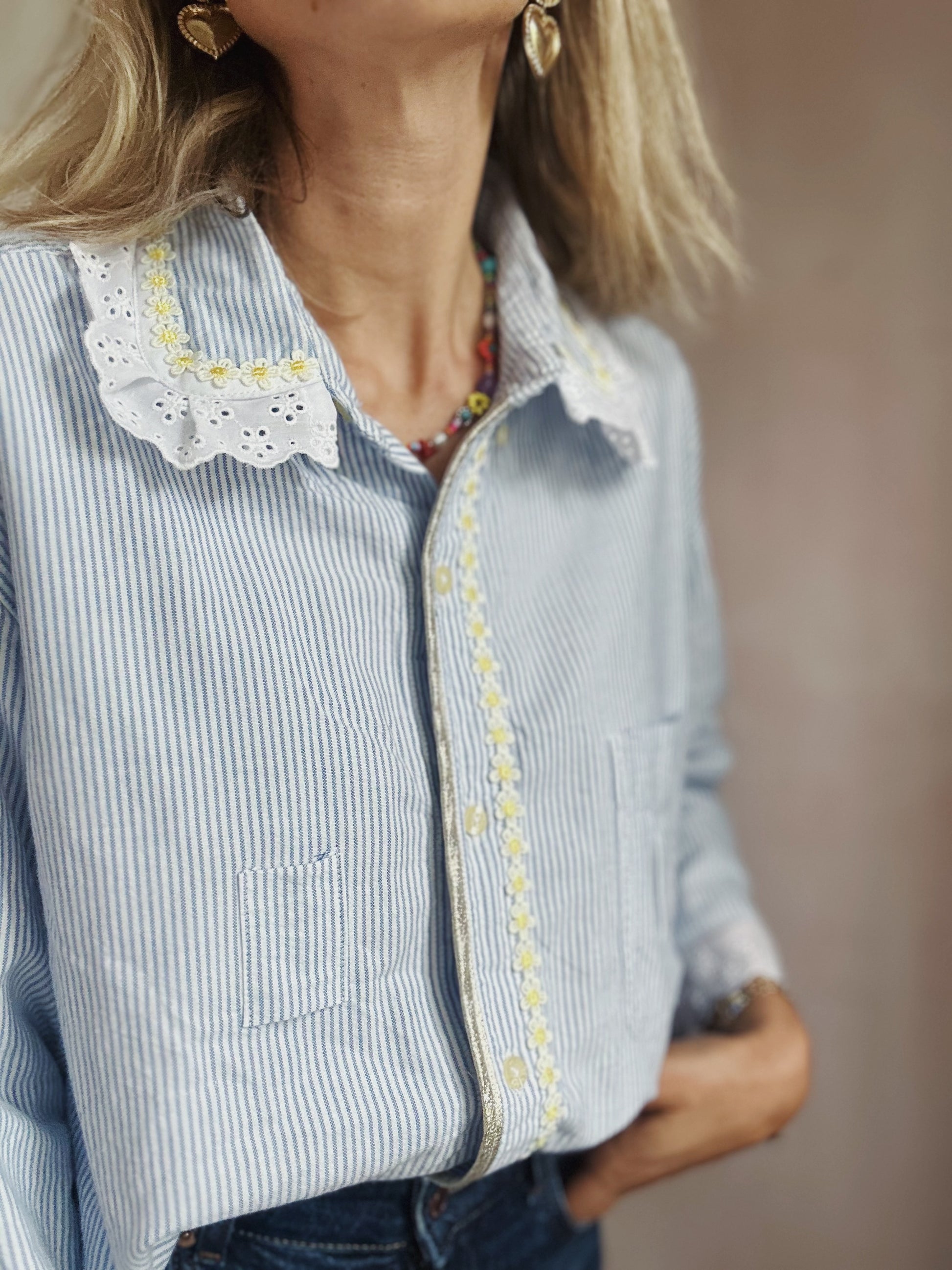 La ligne Intuitive est confectionnée sur des chemises de seconde main. Des pièces spontanées, créatives & précieuses pour des chemises uniques à collectionner.