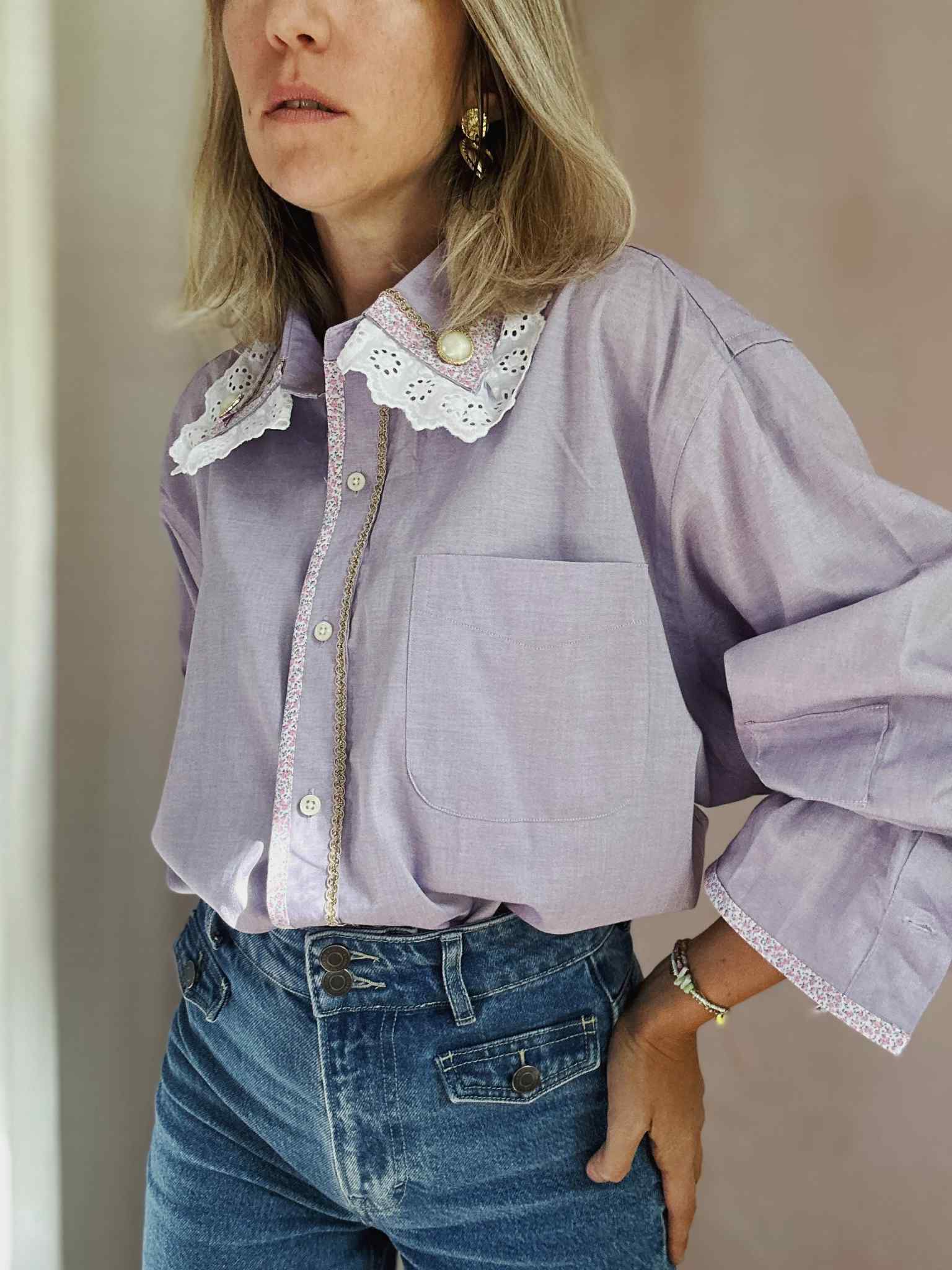 La ligne Intuitive est confectionnée sur des chemises de seconde main. Des pièces spontanées, créatives & précieuses pour des chemises uniques à collectionner.