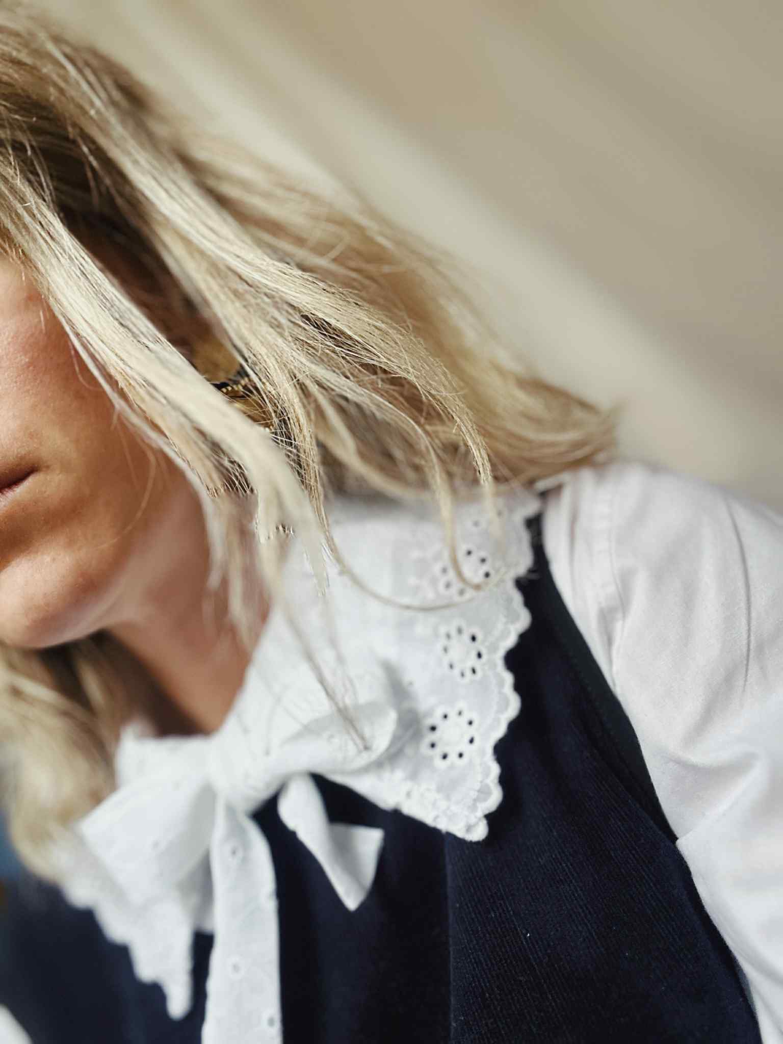 Col à nouer, tissu broderie anglaise issue de stocks dormants de maisons de luxe.