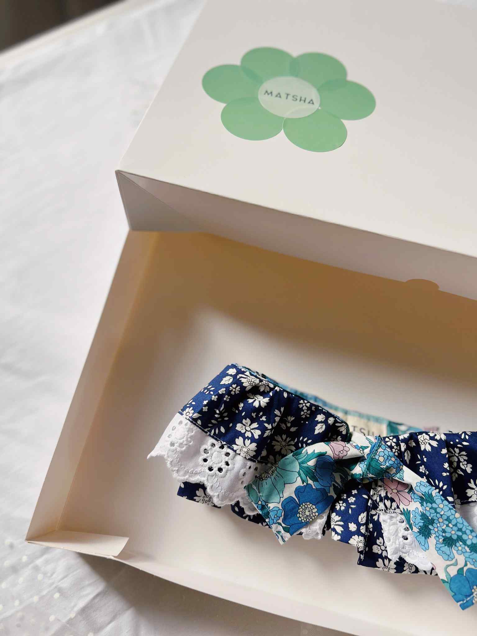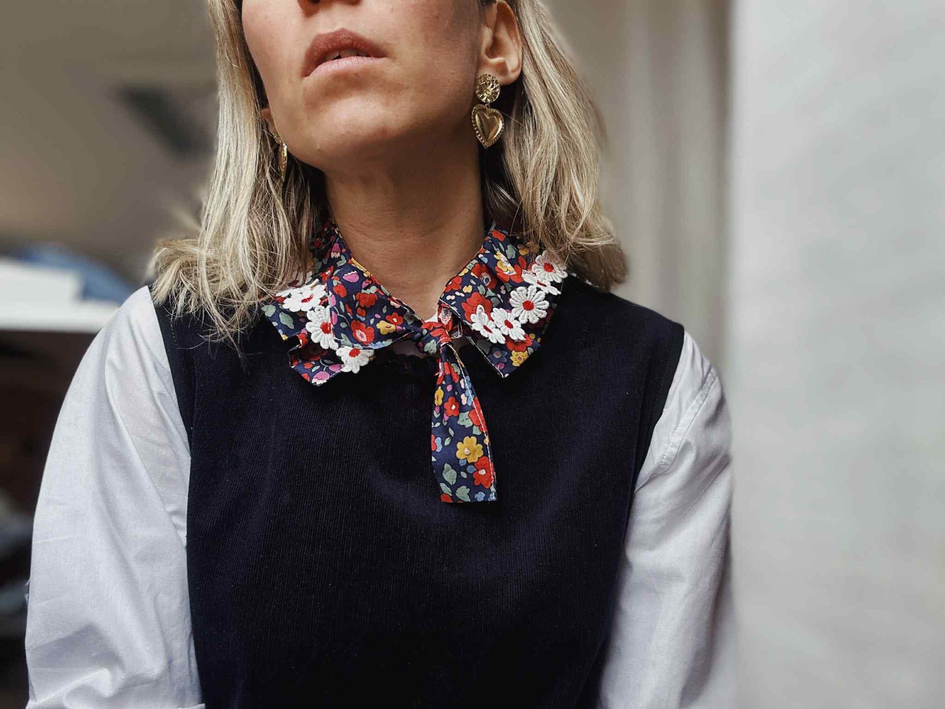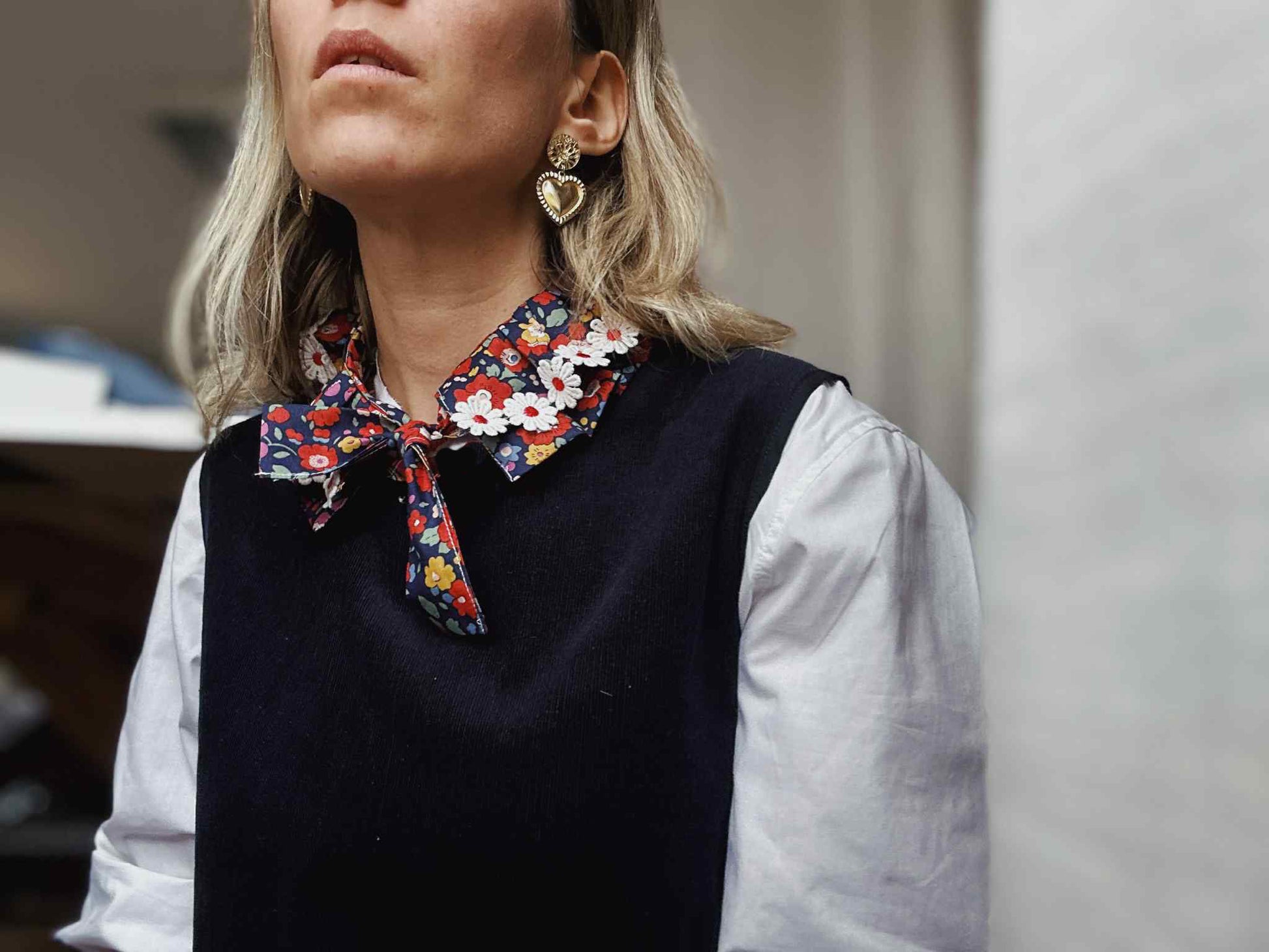 Col à nouer, tissu liberty fabrics et guipure fleurie.