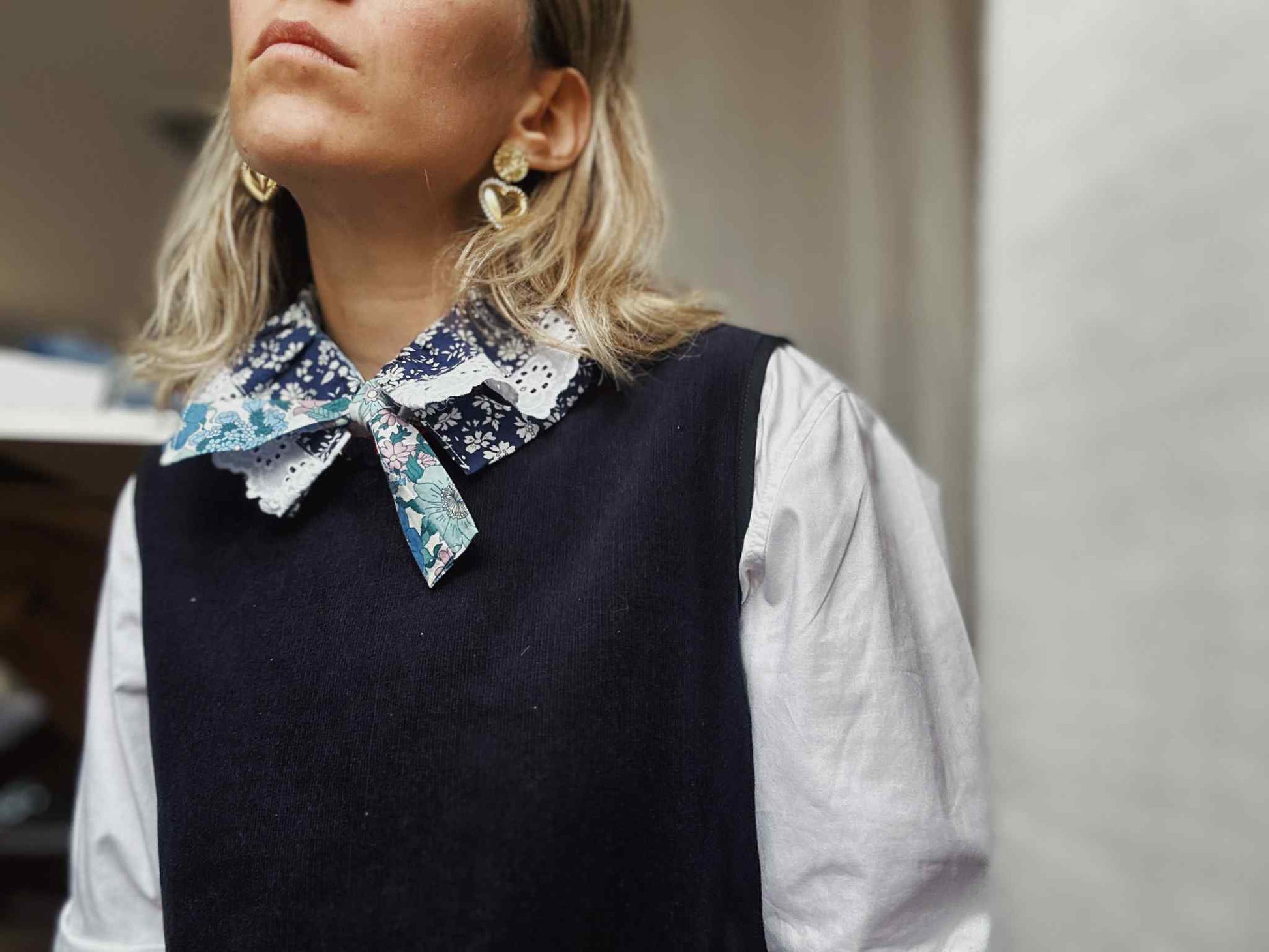 Col à nouer, tissu liberty fabrics et broderie anglaise.