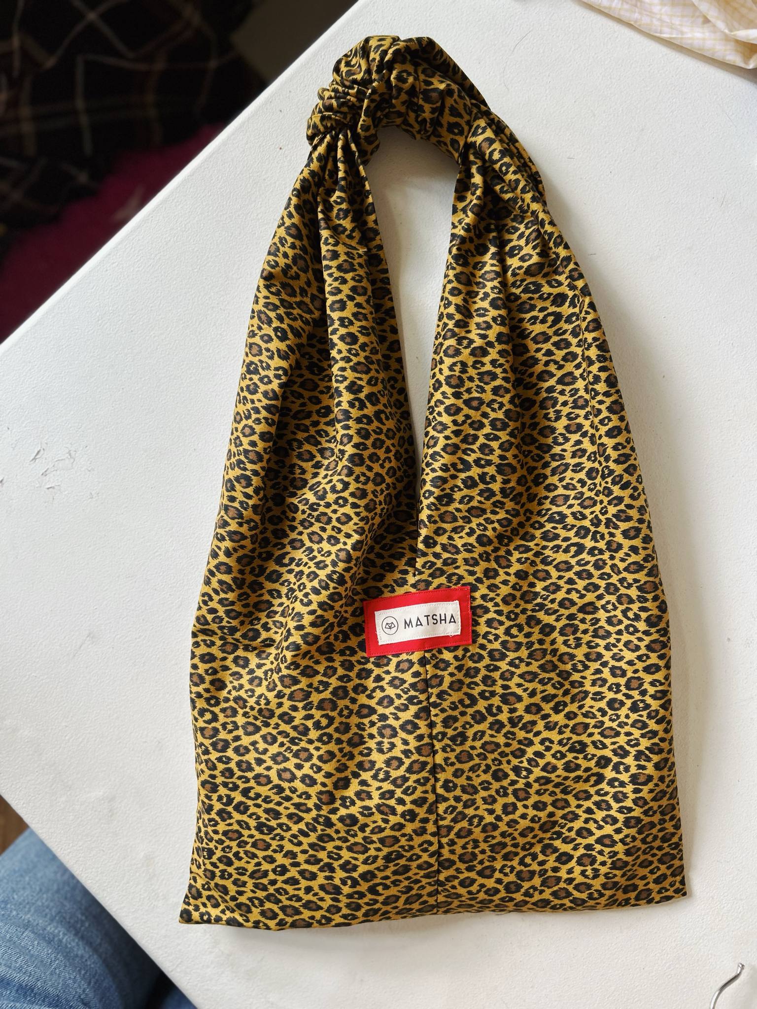 En coton, il est entièrement doublé. Son format 24 X 34 cm permet d'y glisser le nécessaire de votre sac à main. Confortable grâce a son anse large et singulier par son nouage.