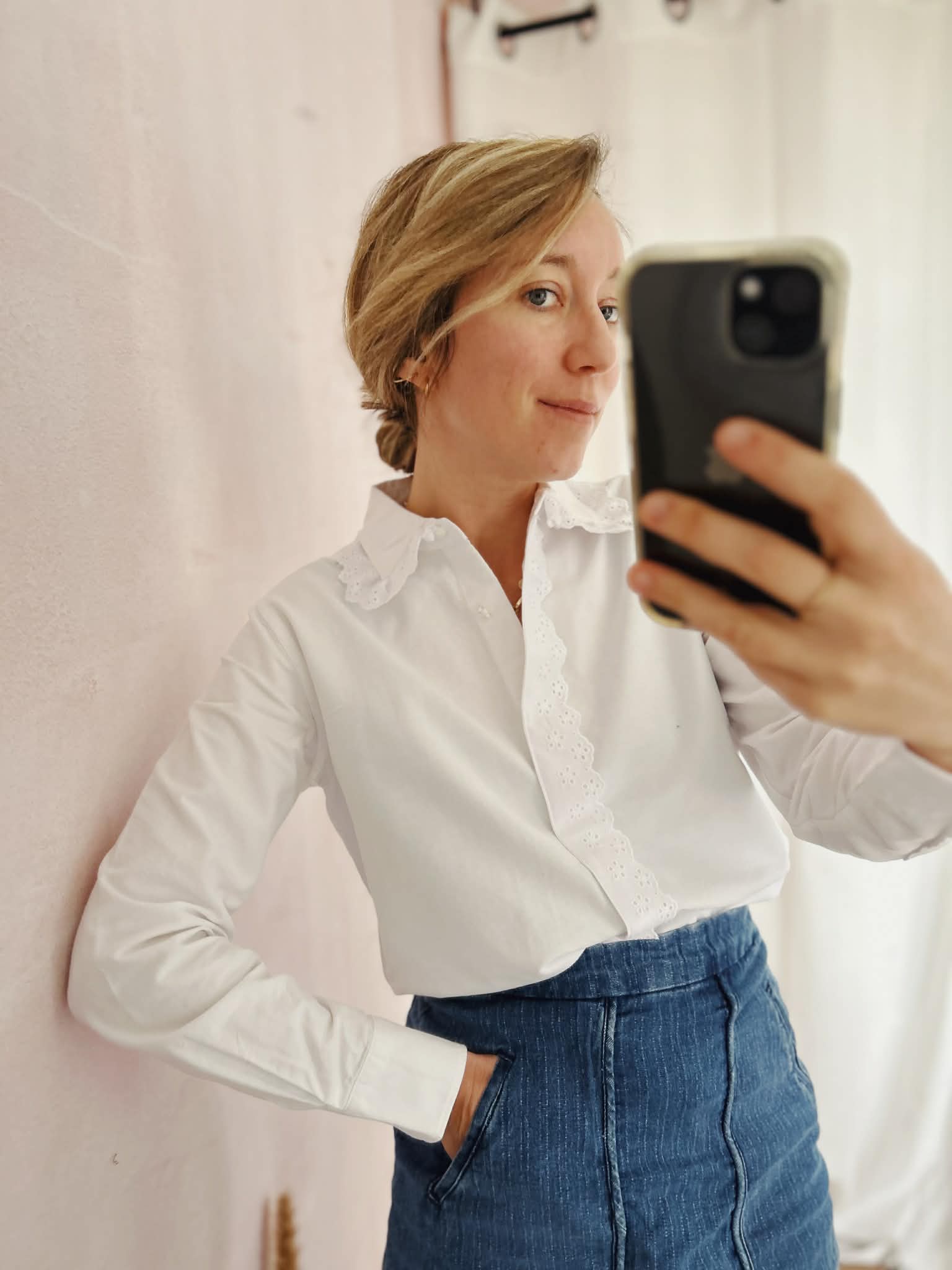 Col et milieu devant ornés de broderie anglaise/ poignet classique