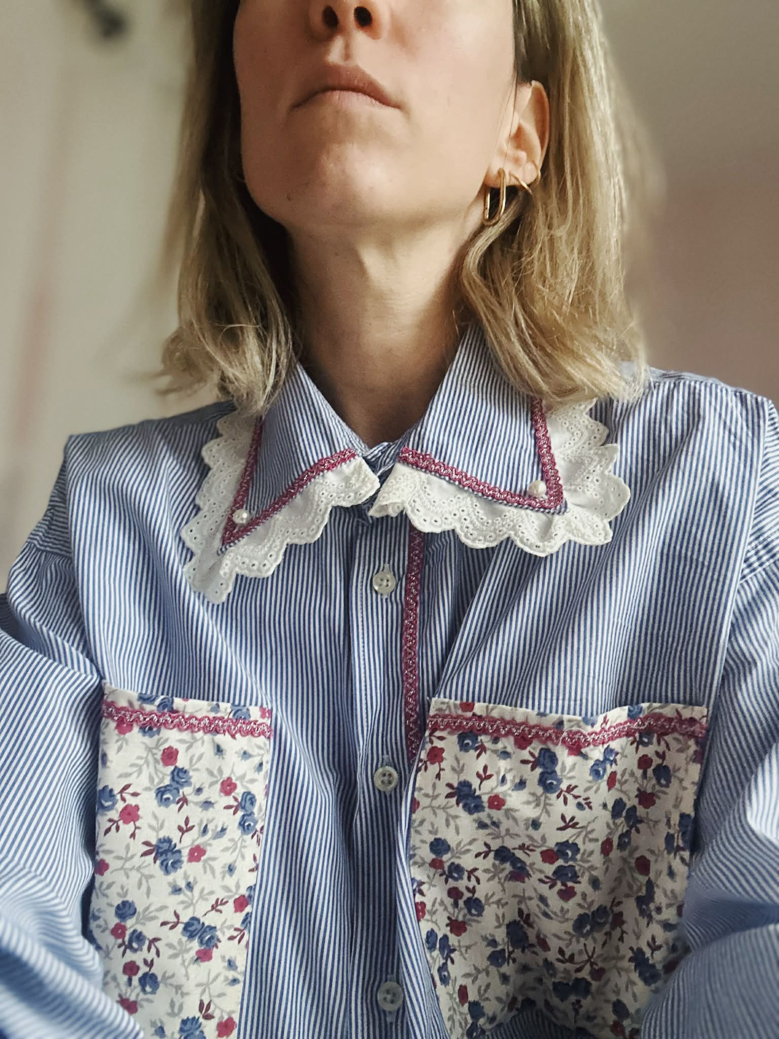 La ligne Intuitive est confectionnée sur des chemises de seconde main. Des pièces spontanées, créatives & précieuses pour des chemises uniques à collectionner.