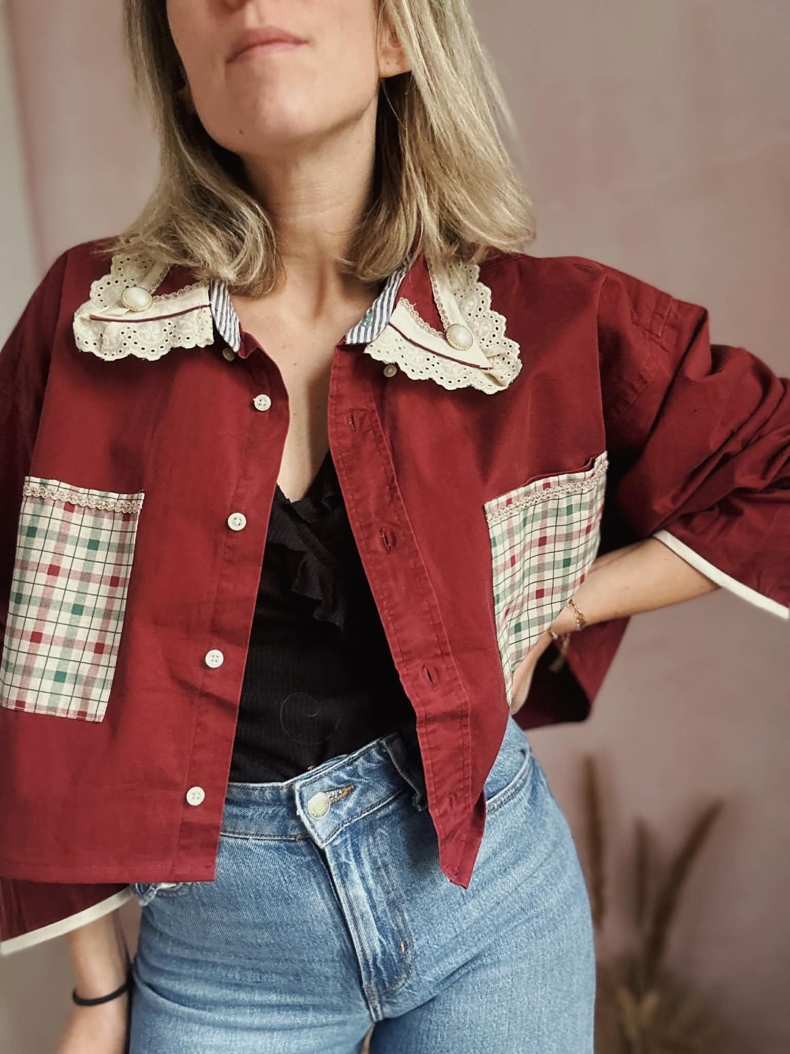 La ligne Intuitive est confectionnée sur des chemises de seconde main. Des pièces spontanées, créatives & précieuses pour des chemises uniques à collectionner.